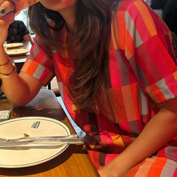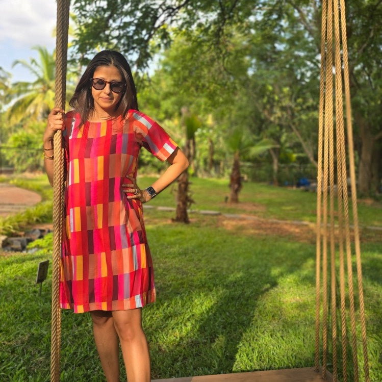 Meet Audrey: not just a dress, but your next style statement. In a striking red brick check, this shift dress isn't loud, it's confident. It’s designed for the woman who appreciates clean lines but isn't afraid of a playful pattern. This piece flows effortlessly, a modern canvas ready for your favorite layered necklaces, a crisp blazer, or simply its own quiet charm. It’s the kind of dress that makes you feel instantly put-together, even when you’re just enjoying the simple pleasures.