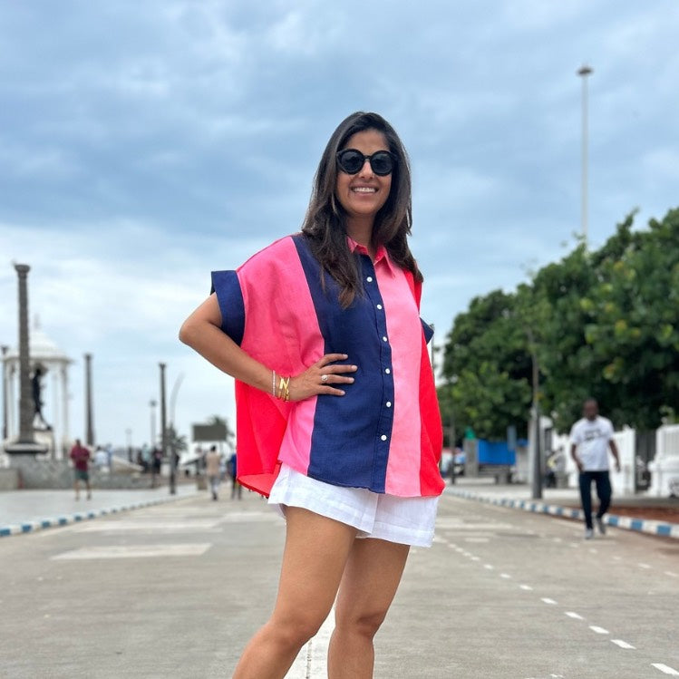 This Blue & Shades of pink shirt is crafted from soft, breathable soft Lin'en fabric, this versatile piece is perfect for any occasion. The relaxed fit ensures a comfortable and flattering look, while the flared silhouette adds a touch of modern elegance.