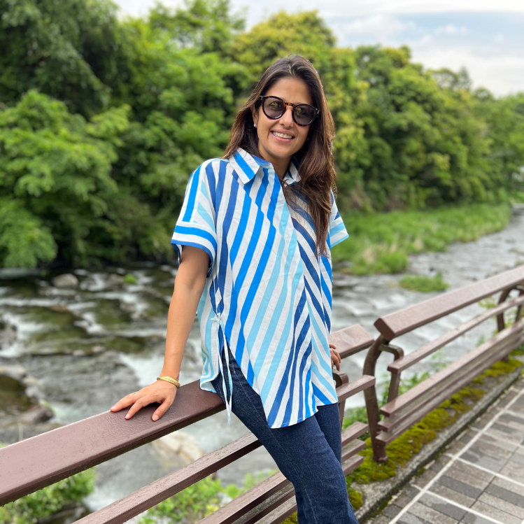 Brookie white & Blue Stripes Soft Lin'en Shirt