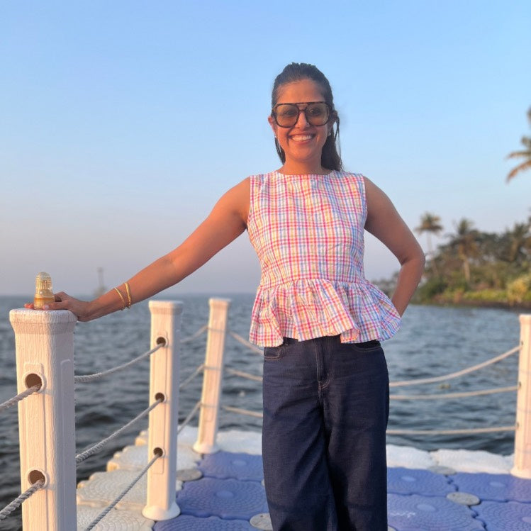 Steal the spotlight at the Biennale with The Picnic Peplum Top by Poppy & Co.—a high-energy piece designed for the girl who treats every sidewalk like a gallery floor. Forget the neutrals; this vibrant, multi-colored check print brings a bold, artistic "main character" energy to your travel wardrobe.