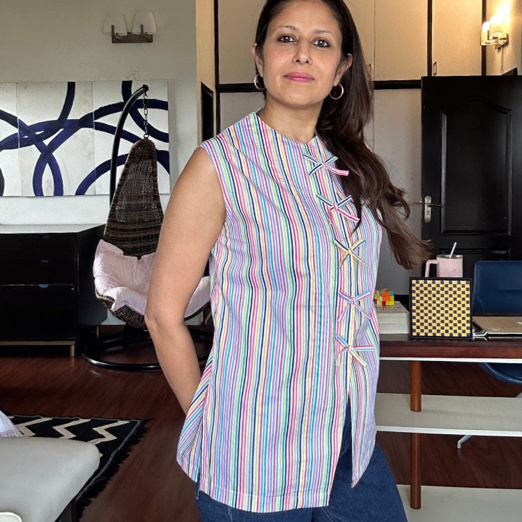 The Kiki Bow Waistcoat | Candy Stripe Cotton Top