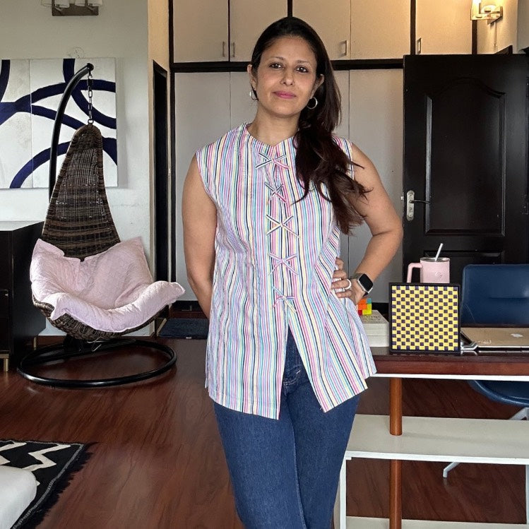 The Fabric & Fit: Crafted from 100% Pure Cotton, this top is crisp, breathable, and holds its shape beautifully throughout the day.